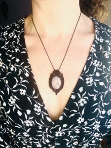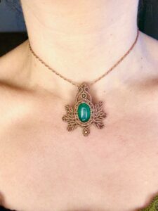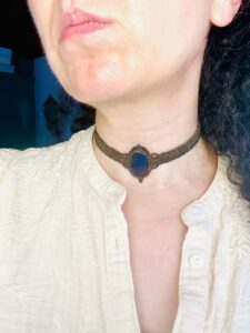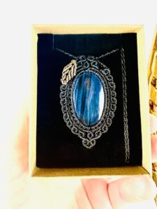 Depuis des générations, les femmes de ma lignée manipulent les fils et les fibres avec une précision presque sacrée. Leurs mains, patientes et habiles, racontaient des histoires, scellaient des liens, ornaient les êtres de symboles protecteurs et d'élégance. Cet art ancestral, transmis dans le silence des gestes a traversé le temps jusqu'à moi. Aujourd'hui, c'est avec cette même ferveur que je crée chaque pièce. Le micro-macramé que je pratique est à la fois un hommage et une renaissance. J'y associe des pierres semi-précieuses soigneusement choisies pour leur énergie, leur beauté et leur qualité, car je crois profondément que ce que l'on porte doit résonner avec ce que l'on est.