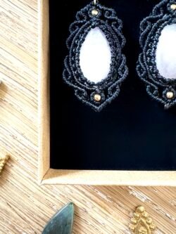 Ornées de quartz rose, chaque paire est soigneusement réalisée à la main, alliant l’art du macramé à la beauté naturelle du quartz rose, connue pour rééquilibrer les énergies du corps afin d’apaiser l’esprit et favoriser le bien-être.