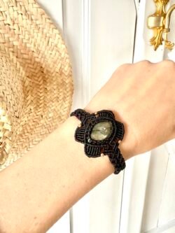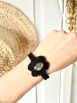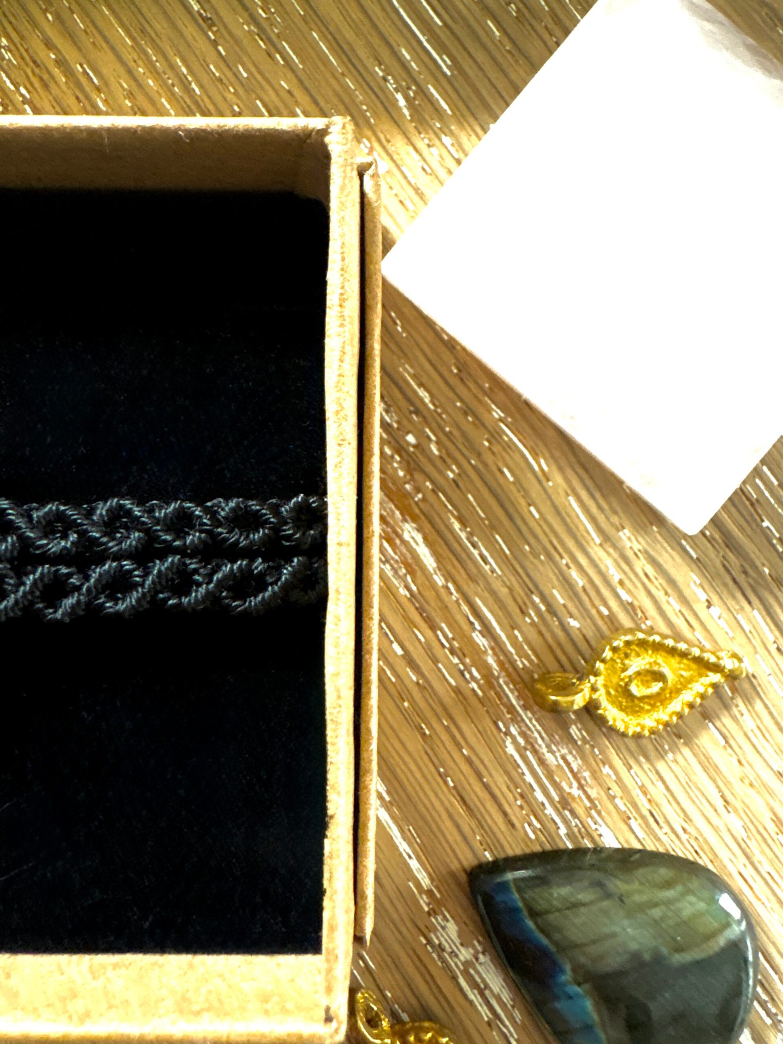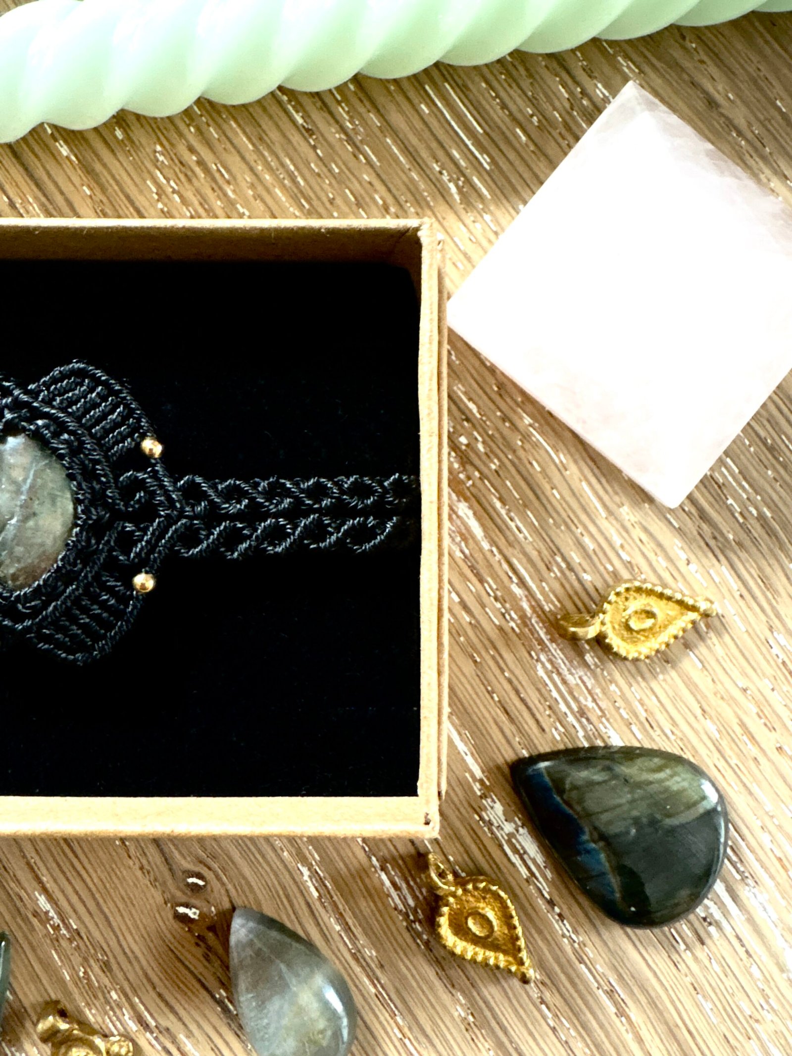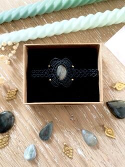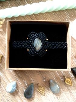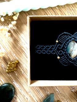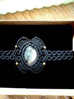 Ornée d’une somptueuse labradorite grise, ce pendentif est soigneusement réalisé à la main, alliant l’art du macramé à la beauté naturelle de la labradorite, connue pour son rôle de bouclier contre les énergies négatives.