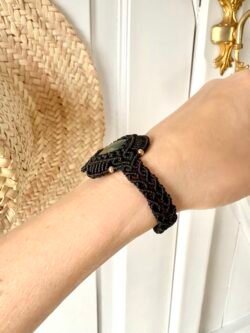 Fil ciré linhasita de couleur noir, perles laiton, cordon réglable.