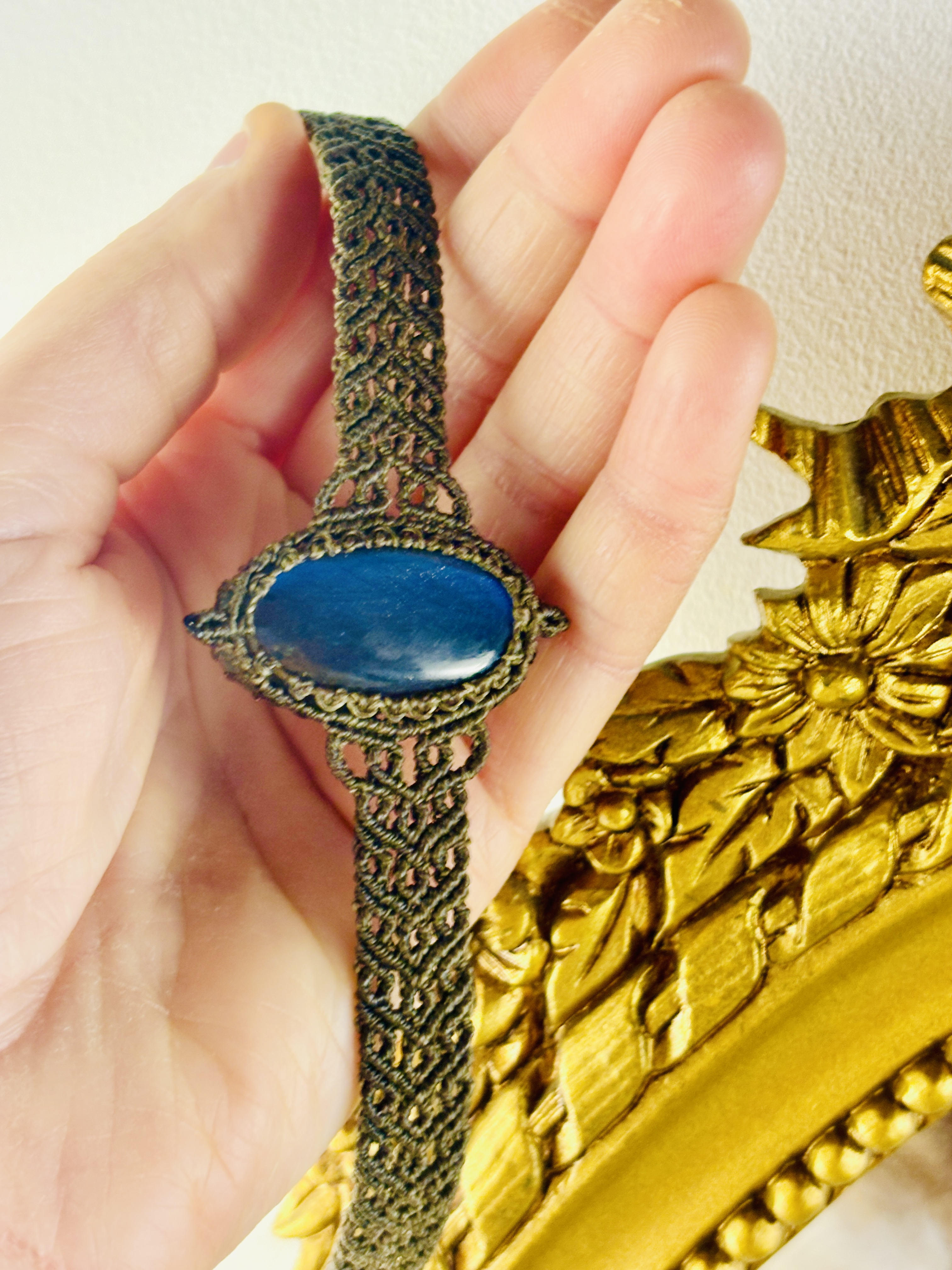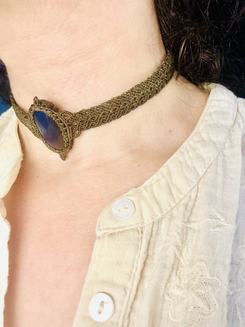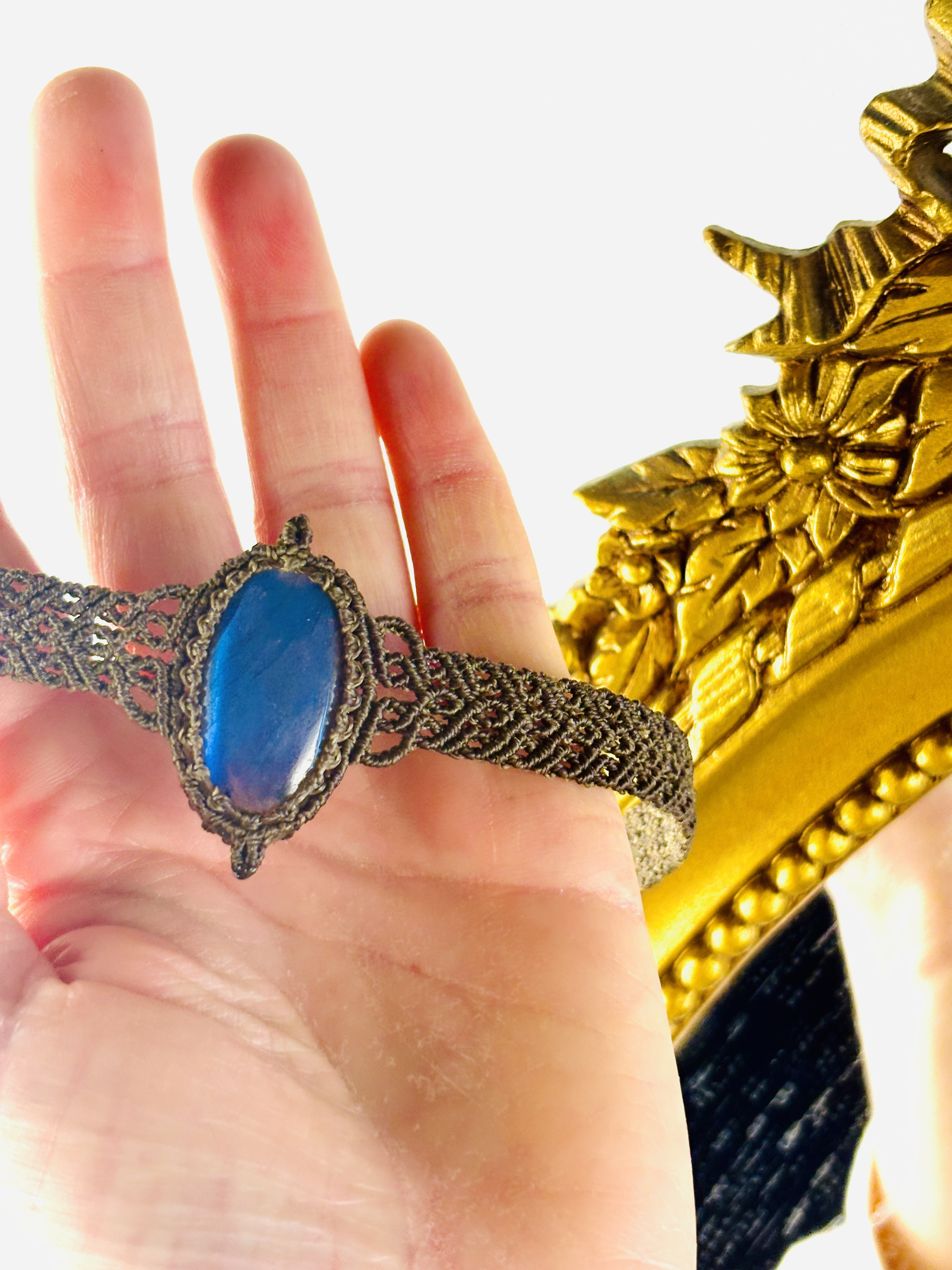 Ornée d’une somptueuse labradorite , ce chocker est soigneusement réalisé à la main, alliant l’art du micro macramé à la beauté naturelle de la labradorite, connue pour son rôle de bouclier contre les énergies négatives.