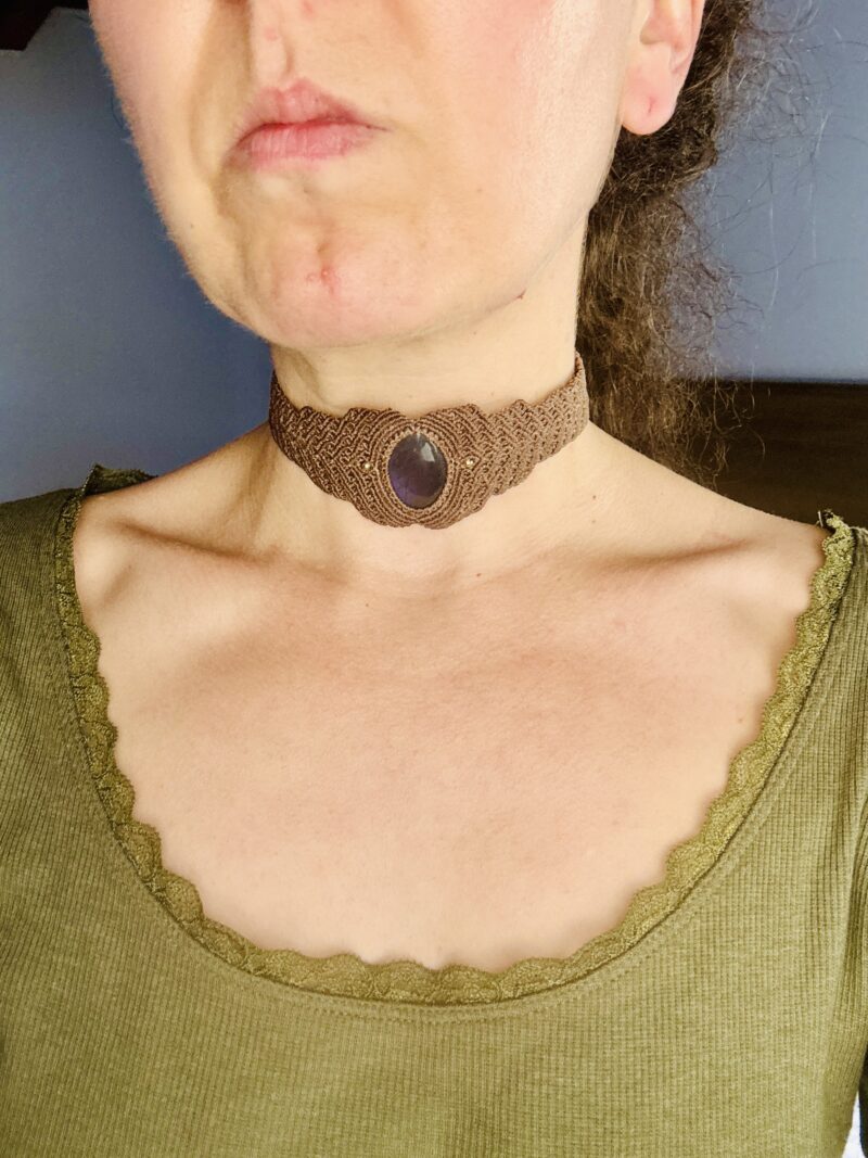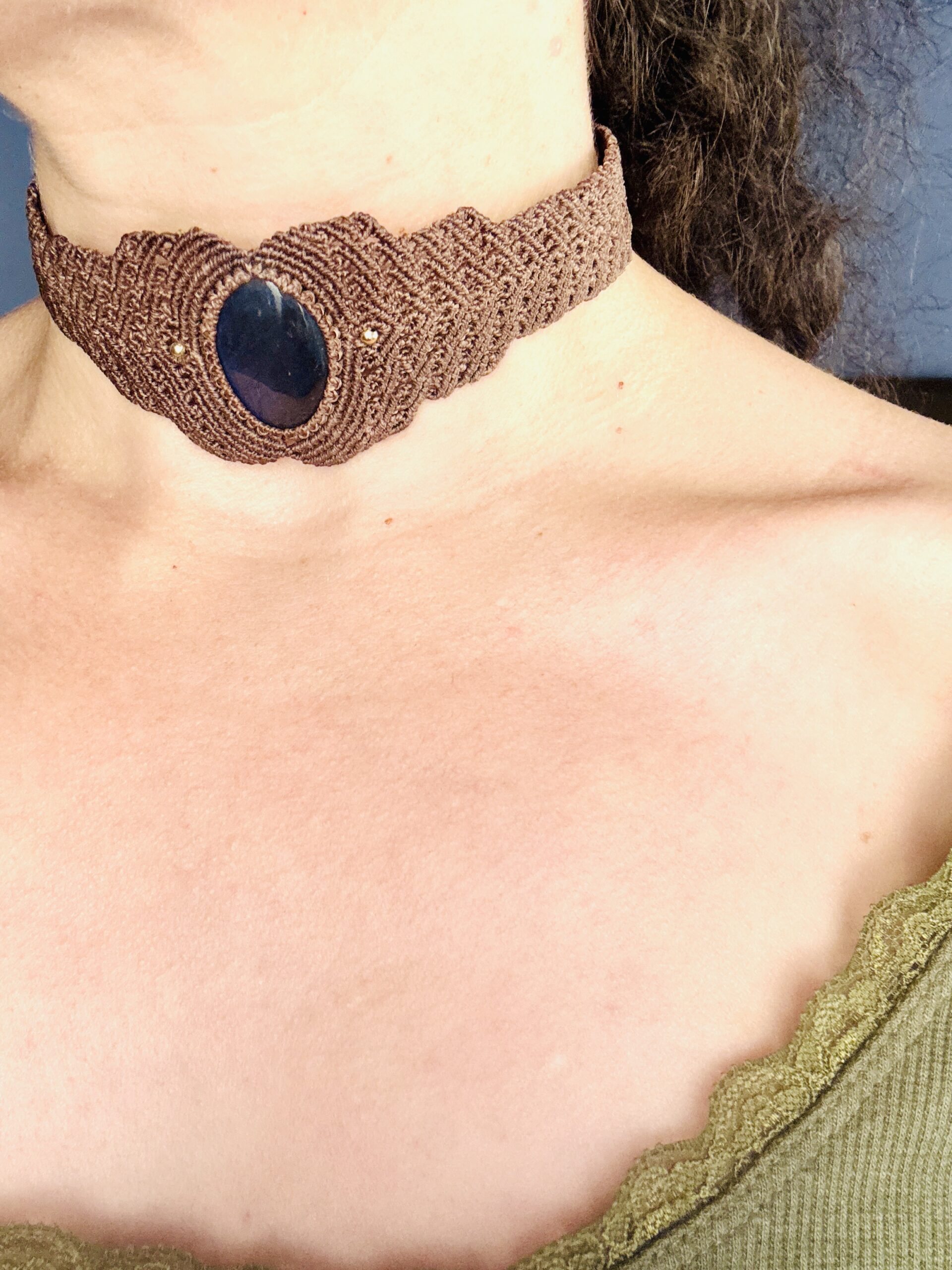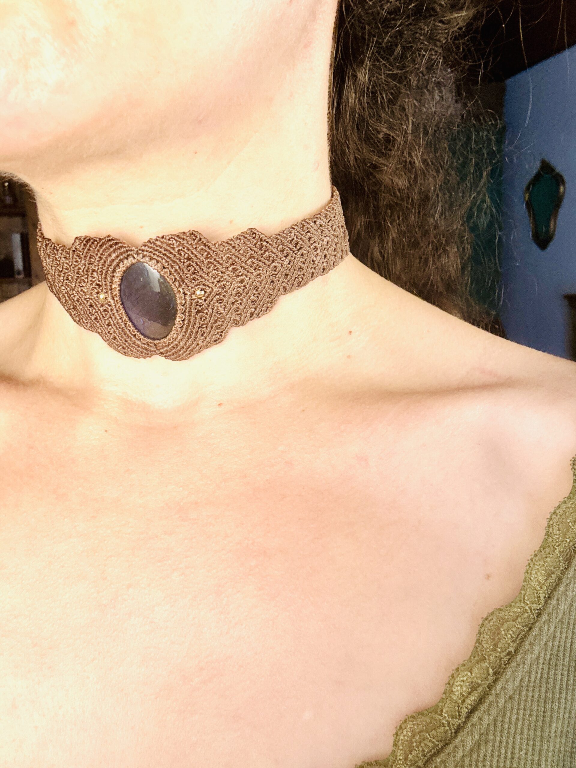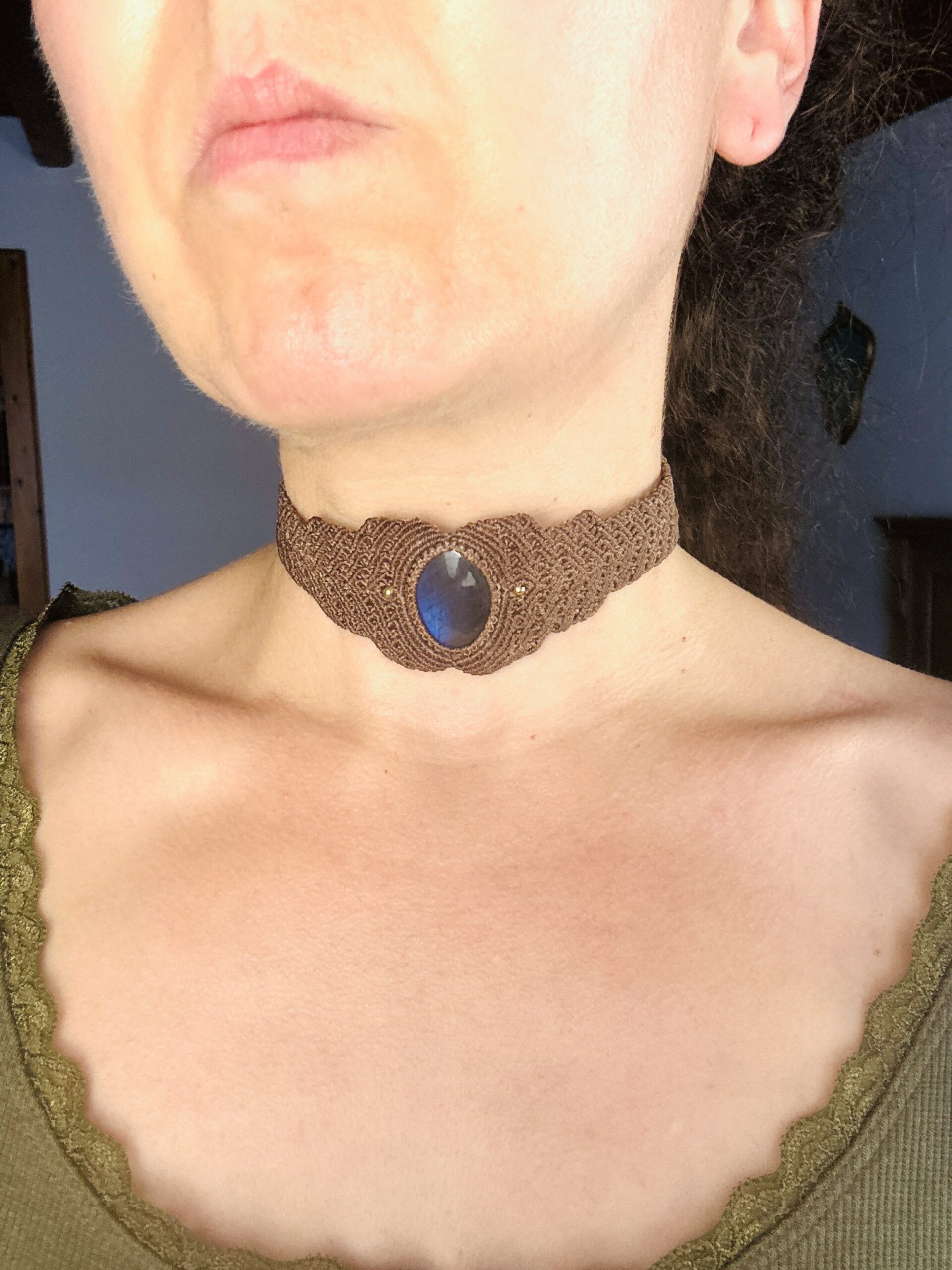 Ornée d’une somptueuse labradorite , ce chocker est soigneusement réalisé à la main, alliant l’art du micro macramé à la beauté naturelle de la labradorite, connue pour son rôle de bouclier contre les énergies négatives.