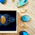 Orné d’un cabochon d’oeil de tigre, chaque manchette est soigneusement réalisée à la main, alliant l’art du macramé à la beauté naturelle de l’oeil de tigre, connu pour éloigner les énergies négatives et créer un bouclier contre les influences indésirables. Cette manchette est montée sur un ravissant cabochon d’oeil de tigre aux reflets dorés, accompagné d’un délicat design arabesques.