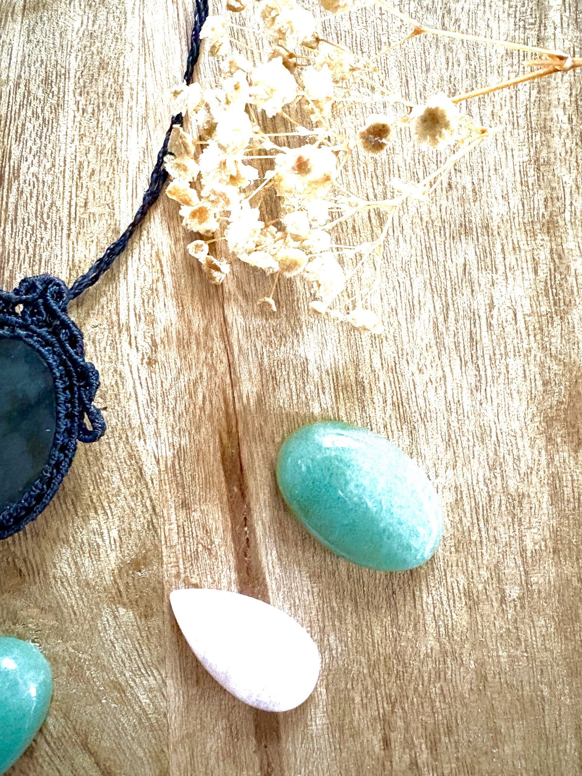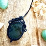 Ornée d’une somptueuse labradorite, ce talisman est soigneusement réalisé à la main, alliant l’art du macramé à la beauté naturelle de la labradorite, connue pour son rôle de bouclier contre les énergies négatives.
