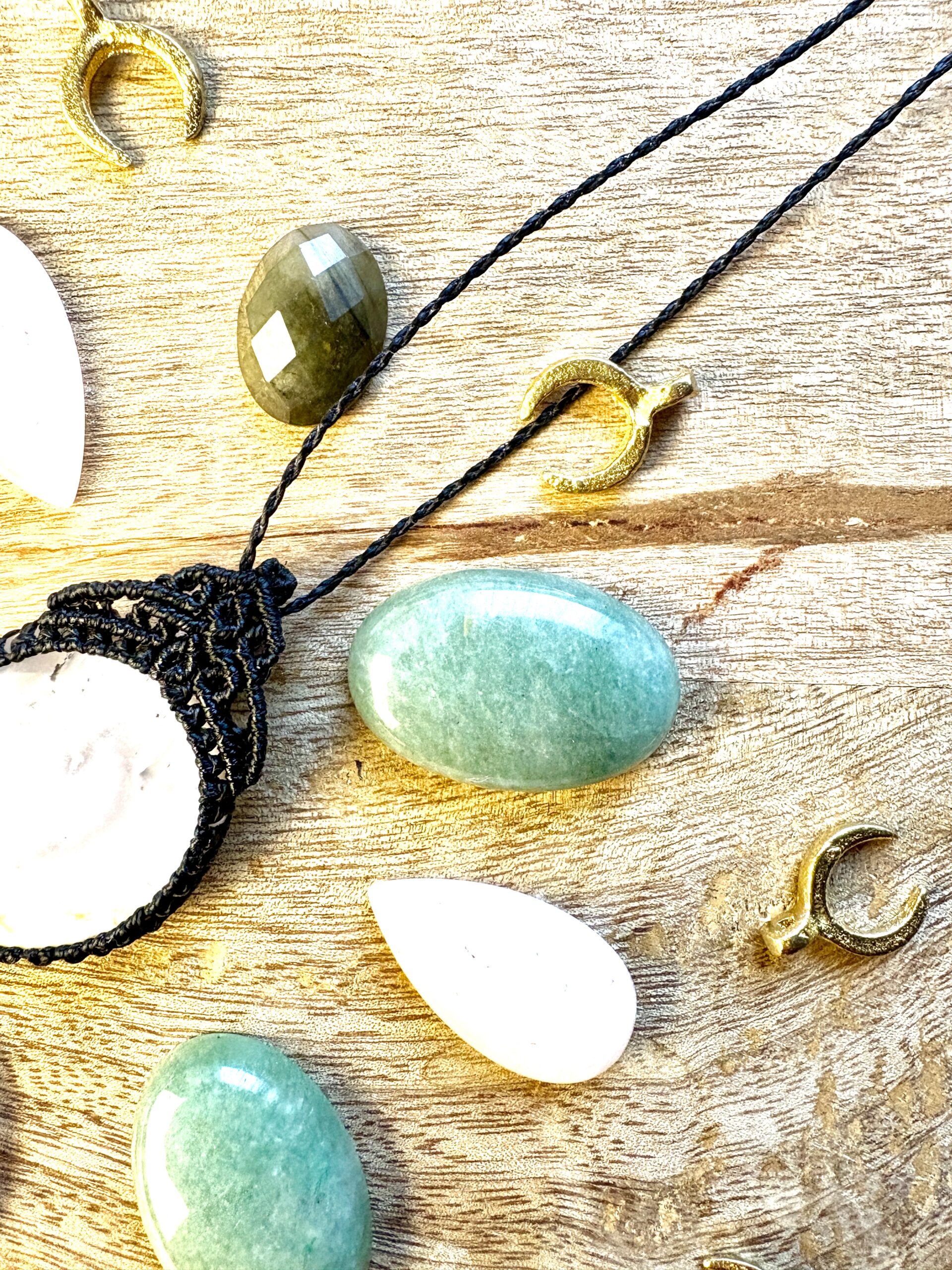 Ornée d’une somptueuse pierre de lune, ce médaillon est soigneusement réalisé à la main, alliant l’art du micro macramé à la beauté naturelle de la pierre de lune, connue pour calmer le mental.